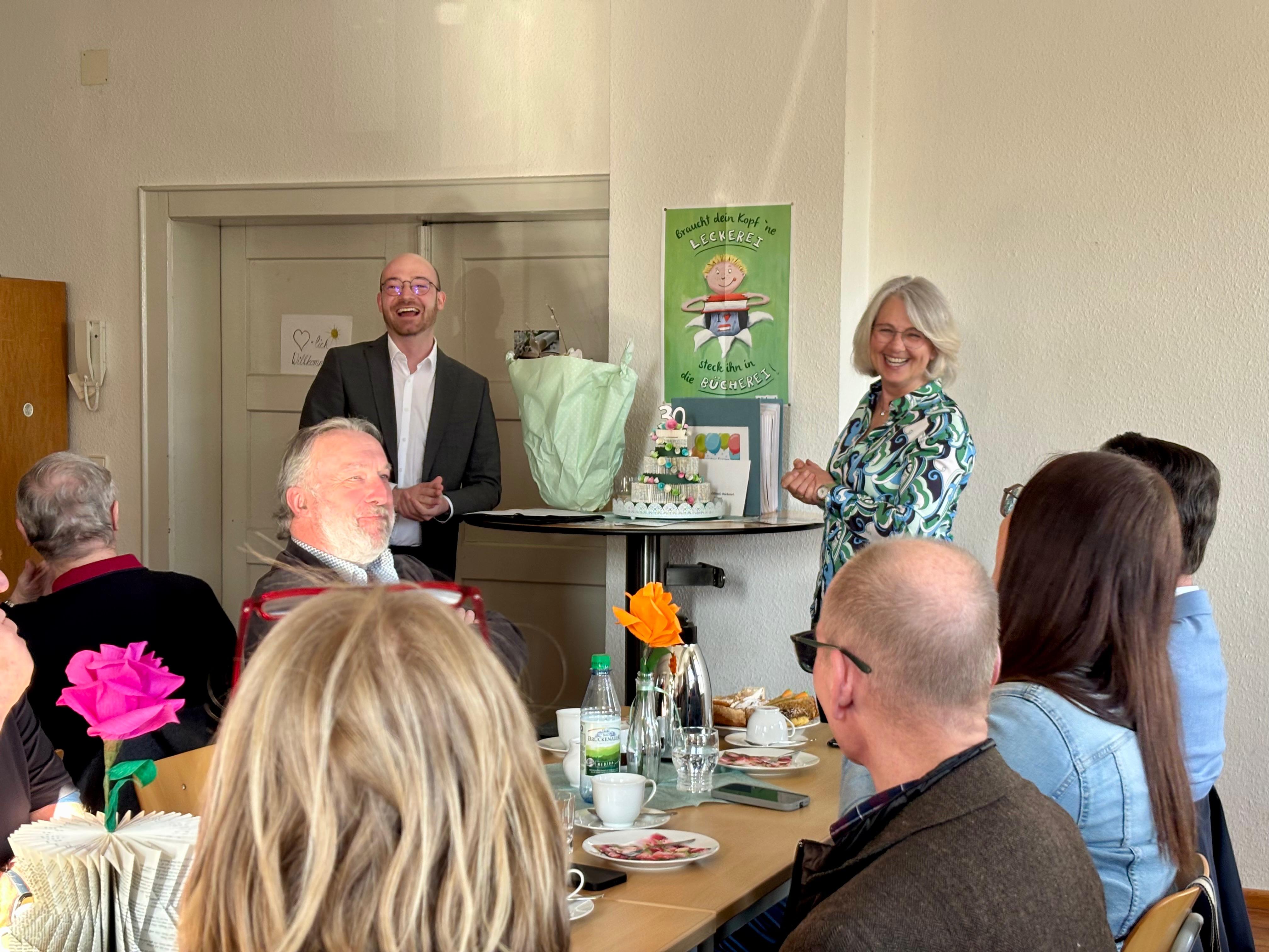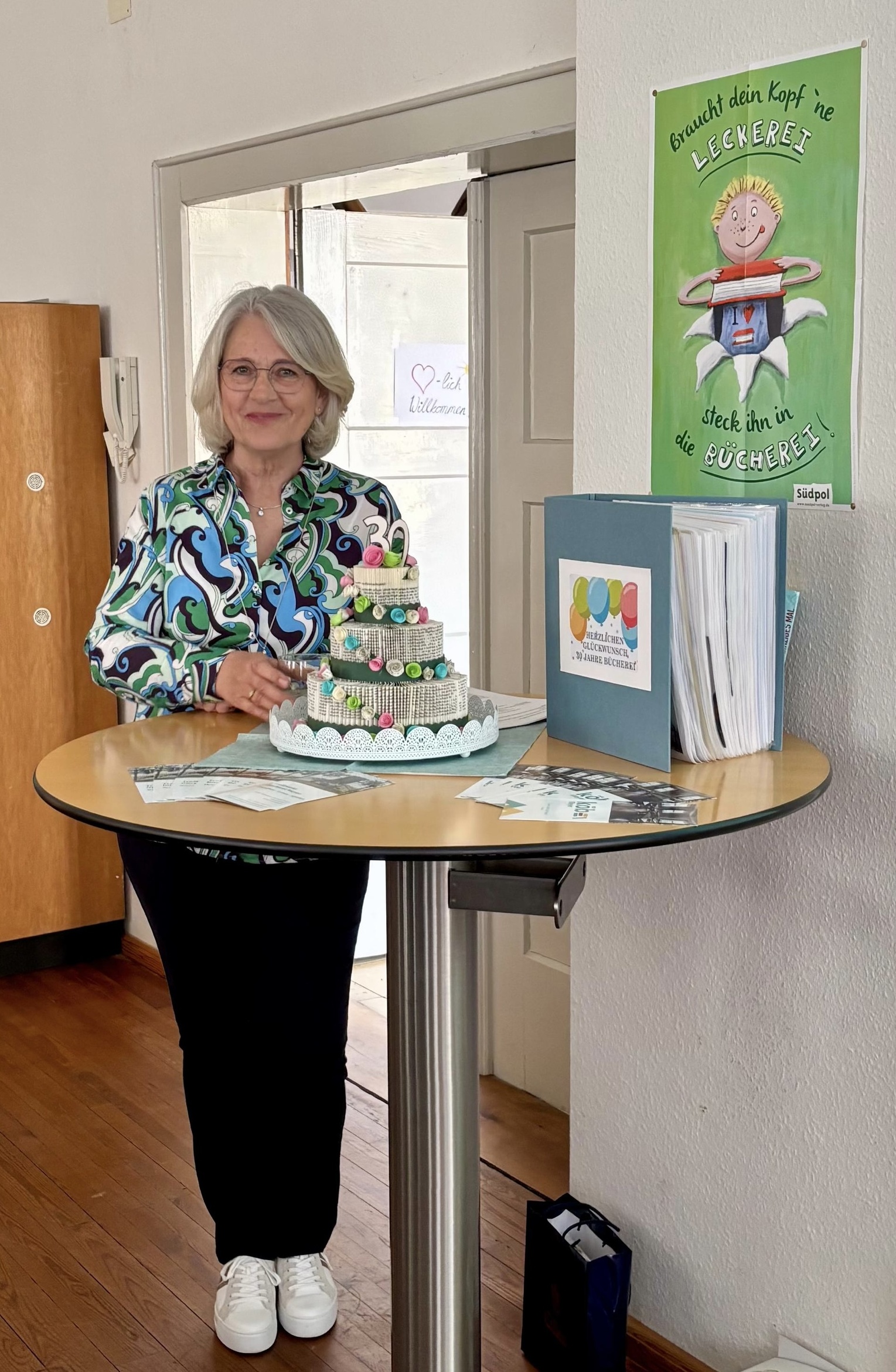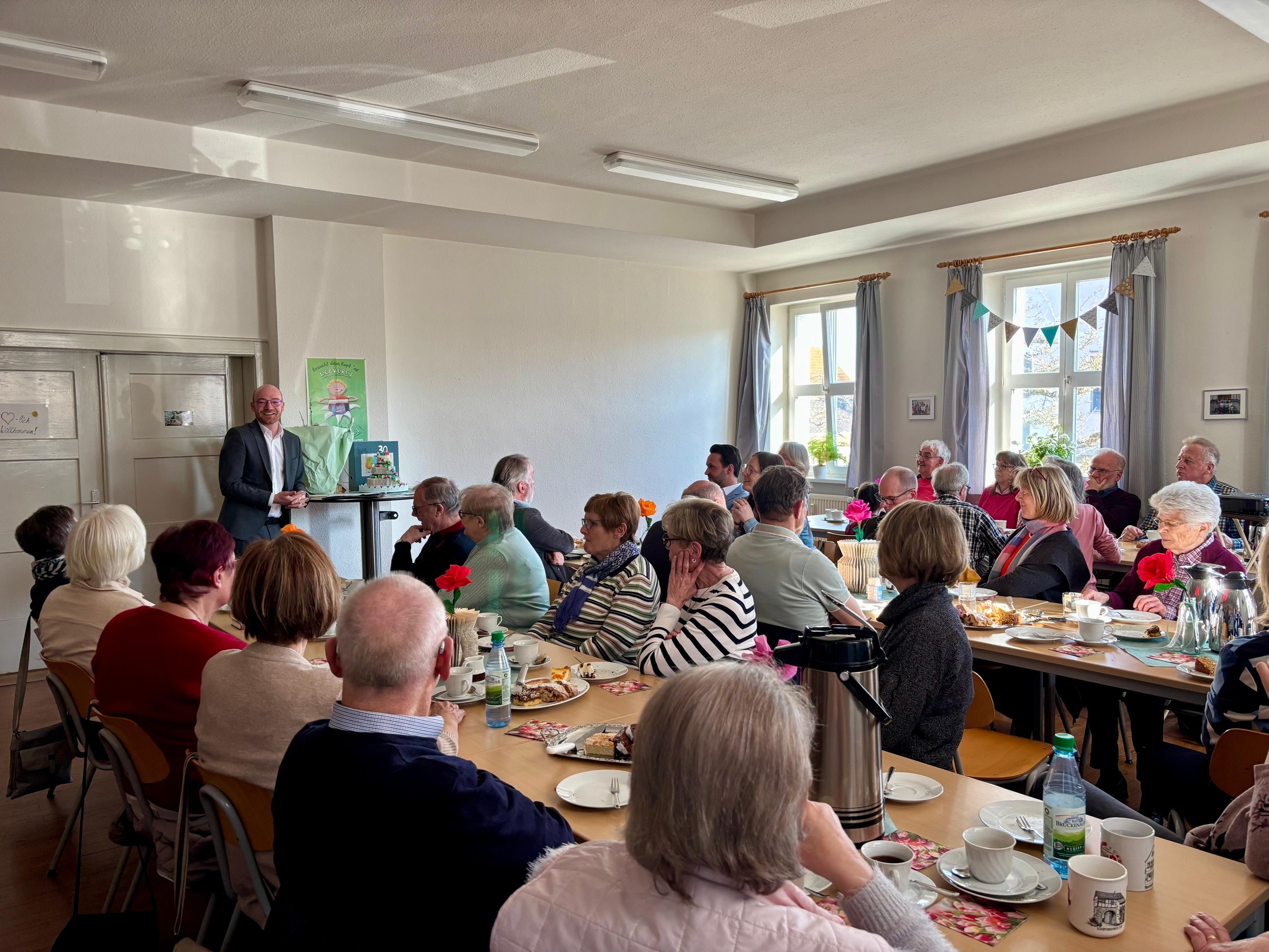 Beim Jubiläumskaffee am 22. März 2025 im Lesecafé der Bücherei konnten alle eingeladenen Gäste bei Kaffee und Kuchen einen Rückblick auf 30 Jahre KöB Weyer erleben. Mit einer Foto-Präsentation wurde auf die vergangenen Jahrzehnte zurückgeschaut - ein unterhaltsamer und kurzweiliger Rückblick für die Gäste. Bürgermeister Kneuer aus Gochsheim und Herr Huisl von der Fachstelle der öffentlichen Büchereien der Diözese Würzburg überbrachten dem Büchereiteam Glückwünsche und Dankesworte sowie einen finanziellen Zuschuss für die Anschaffung neuer Medien.